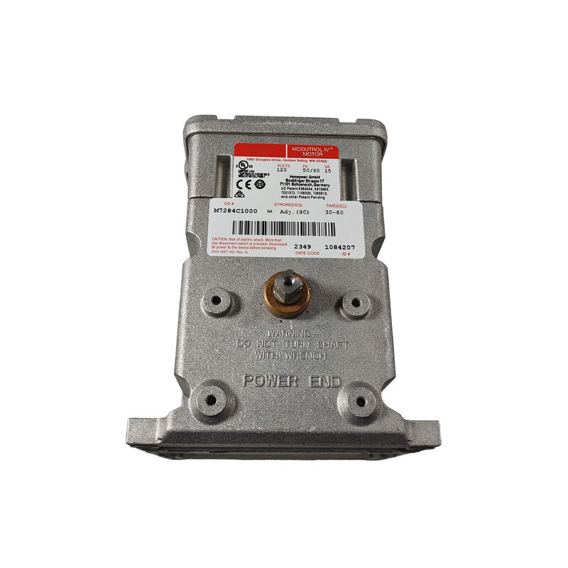 Les données produit de la famille M7284 le montrent comme un moteur d'actionneur 120 VAC, 50/60 Hz de la classe couple de 150 lb-in, tandis que les pages de vente publiées pour ce modèle exact décrivent également une course réglable de 90° à 160° et un temps de fonctionnement nominal de 30 à 60 secondes.